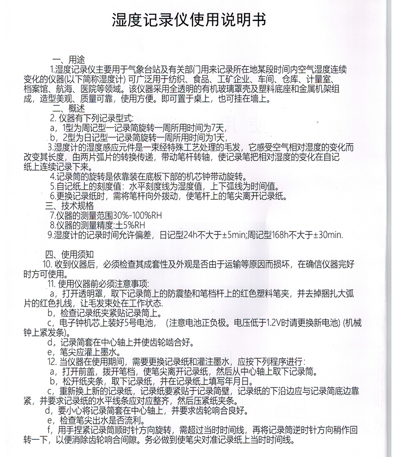4, 日记型气压计的记录时间允许偏差24h不大于±5min;周记型气压计的记录时间允许偏差168h不大于±30min.